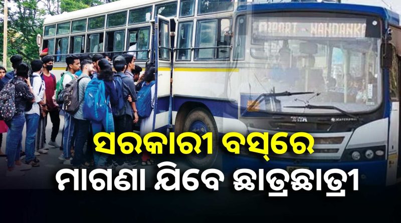 Read Moreଛାତ୍ରଛାତ୍ରୀଙ୍କ ପାଇଁ ଖୁସି ଖବର । ଏଣିକି ସରକାରୀ ବସ୍ରେ ଛାତ୍ରଛାତ୍ରୀ ମାଗଣା ସ୍କୁଲ ଯାଇପାରିବେ। ପରିଚୟପତ୍ର ଦେଖାଇ ମାଗଣାରେ ଛାତ୍ରଛାତ୍ରୀ ସ୍କୁଲ ଯିବେ ବୋଲି ସ୍କୁଲ