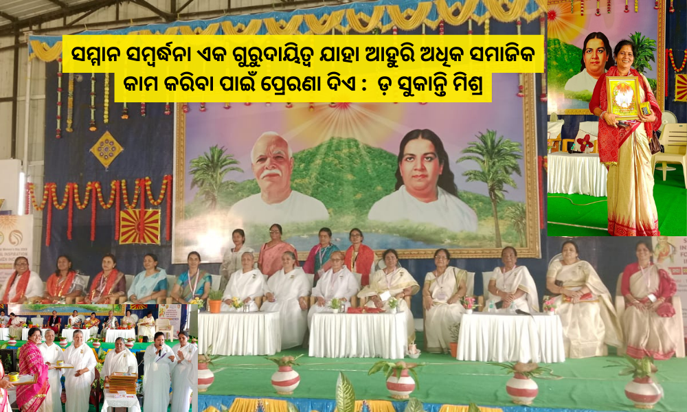 ଉଲ୍ଲେଖନୀୟ ସେବା କାର୍ଯ୍ୟ ପାଇଁ ବ୍ରହ୍ମାକୁମାରୀ ଈଶ୍ୱରୀୟ ବିଶ୍ୱବିଦ୍ୟାଳୟ ତରଫରୁ ସମ୍ବର୍ଦ୍ଧିତ ହେଲେ ଡ଼ ସୁକାନ୍ତି ମିଶ୍ର