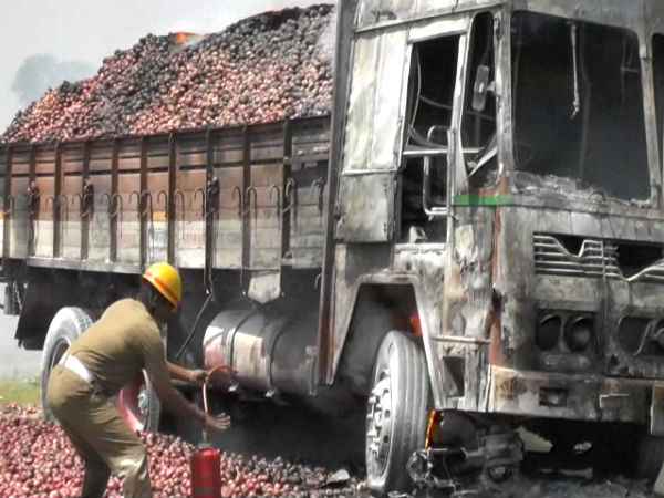 ପିଆଜ ବୋଝେଇ ଟ୍ରକ୍ରେ ଲାଗିଲା ନିଆଁ